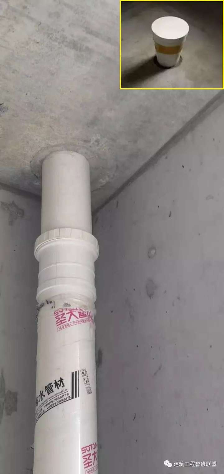 立管吊模立管吊模采用专用配件,底部光滑、密实,观感好;排水封堵严密,施工过程中无杂物侵入。特别是对于精装修工程,排水设备口施工过程较长,必须严格封堵,确保无隐患。