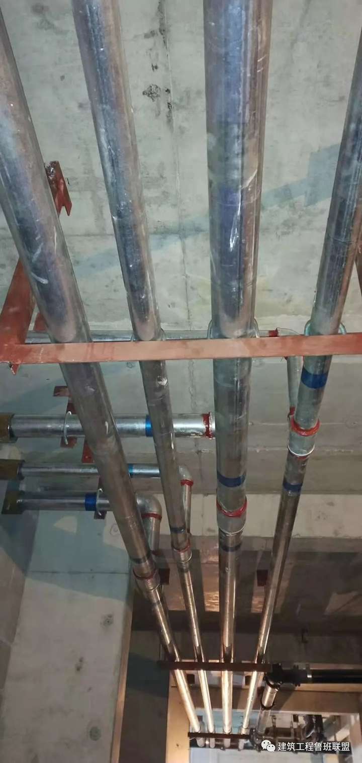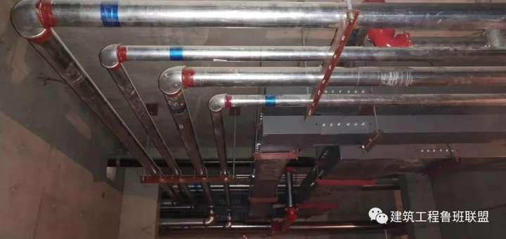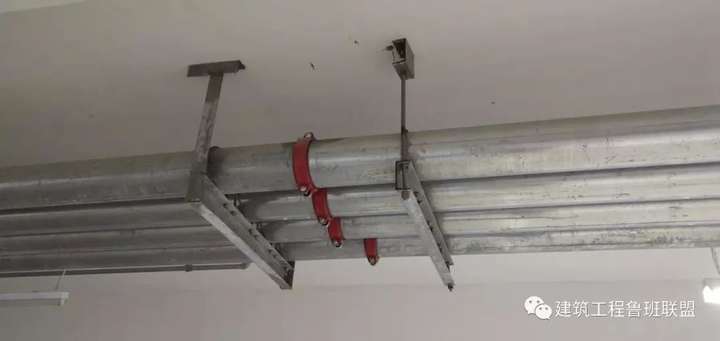 给水管道安装给水管道支架安装按规范要求,吊架、固定支架布置合理;大型管道安装,必须要支架方案先行,以保证支架承载安全。