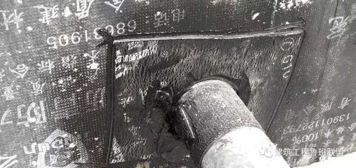 管道出户处理捻口密实很重要,油麻封堵,管道周圈环缝要一致,素灰捻口密实,再用防水卷材处理与管道连接不小于20公分。通常此部位疏忽容易引发漏水,因此要严格控制,以杜绝外墙渗漏质量通病。