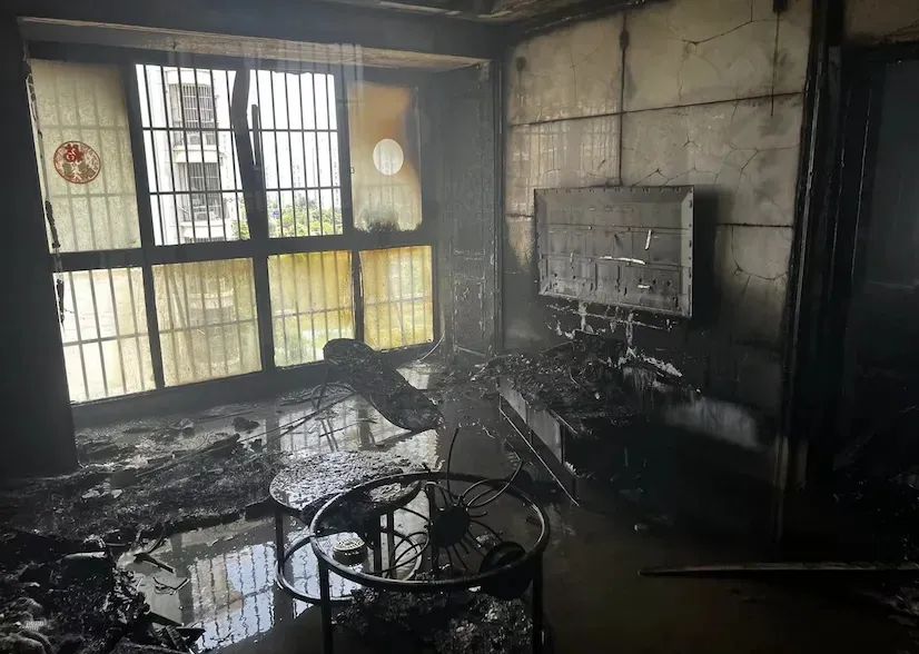 2022年6月,江苏镇江,孩子随手将放大镜放在纸箱上,阳光强烈照射一段时间后,纸箱起火,火灾导致家中物品严重烧毁。