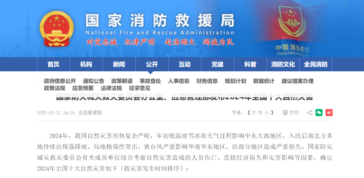 2024年,我国自然灾害形势复杂严峻,年初低温雨雪冰冻天气过程影响中东大部地区,入汛后南北方多地持续出现强降雨、局地极端性突出,秋台风严重影响华南华东地区,给部分地区造成严重损失。国家防灾减灾救灾委员会有关成员单位综合考虑自然灾害造成的人员伤亡、直接经济损失和灾害影响等因素,确定2024年全国十大自然灾害如下(按灾害发生时间排序):