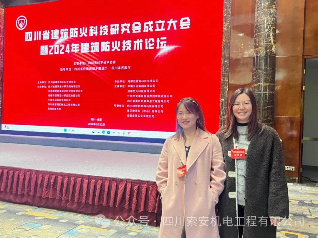 2024年1月12日,四川省建筑防火科技研究会成立大会暨2024年建筑防火技术论坛在成都科华明宇豪雅饭店举行,索安高级工程师/总经理助理-杨苹、综合部主任侯惠蓉受邀出席本次会议。