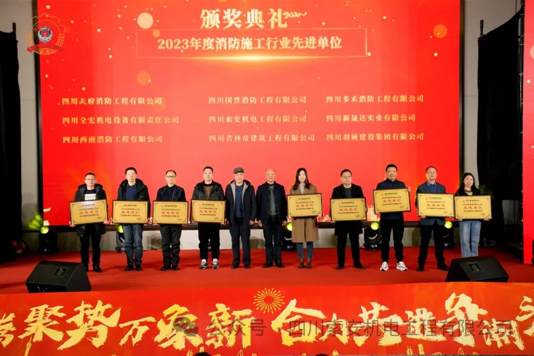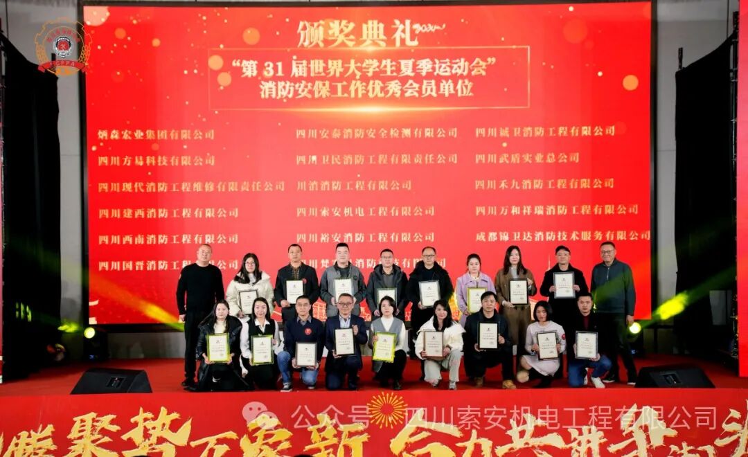会上,四川索安机电工程有限公司荣获2023年度消防施工先进单位及第三十一届世界大学生夏季运动会“消防安保卫士”荣誉称号。这些荣誉是对我们专业化消防工程服务和团队努力的认可,也是我们在消防领域取得的重要里程碑。
